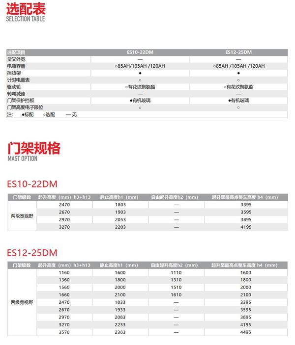 1.0/1.2噸電動堆高車 (兩級寬腿)