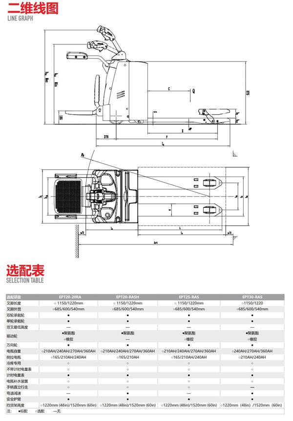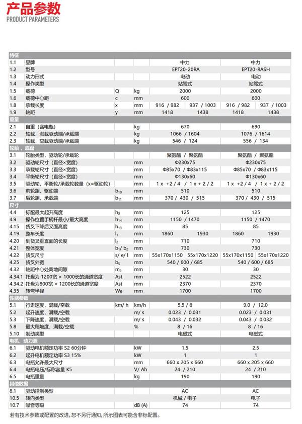 2.0/2.5/3.0噸電動搬運車 (S代表電子轉向功能,H代表為高速版)